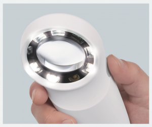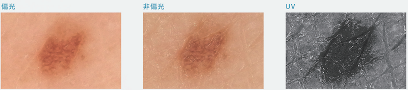 照度30,000ルクスの高輝度LEDで、できものの細かい形・模様・色合いを正確に見ることができ、ダーモカメラ同様、偏光と非偏光を切り替えて疑っている病気によって使い分けが可能です。
