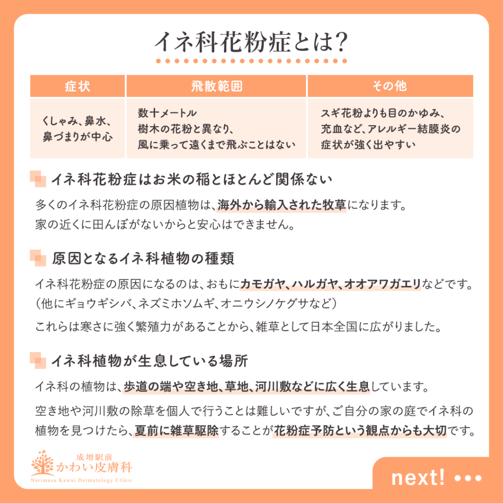 ※「イネ科花粉症」とは言っても、お米が取れるイネの花粉とは関係がありません。