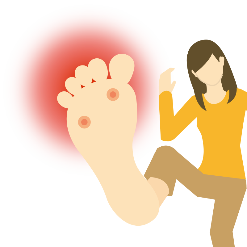 たこ・ウオノメは、足の皮膚が圧迫されたり、繰り返し摩擦を受けることによって発症します。