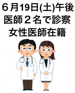 6月19日(土)午後は医師2名